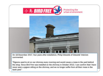 Bird Free has been installed at thousands of commercial sites worldwide. These include airports, government offices, sports stadiums, railway stations, hospitals, factories, pylons, bridges, historic buildings, and many other locations where birds had previously been a nuisance or a health hazard.